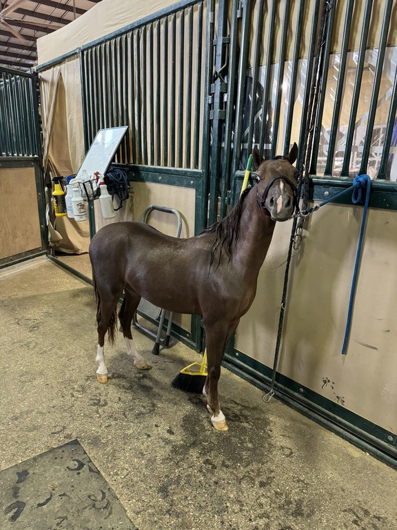 'Rob''--What a stunning stallion with his amazing movement; great temperament; awesome conformation--although he did sire one colt for us that we named LC IT'S 5 O'CLOCK SOMEWHERE, we ended up selling him to Mike Herron as we were not doing any cart driving at the time.